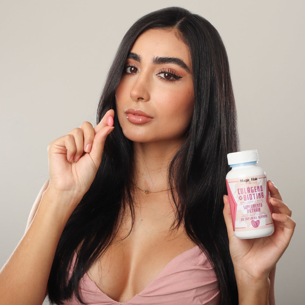 Brinda beneficios como: mejora la firmeza elasticidad de la piel, ayuda con el crecimiento de las uñas, ayuda a prevenir arrugas, celulitis, fortalece la raíz del cabello evitando la caída y estimula el crecimiento. No se permite el uso en estado de embarazo o lactancia (se recomienda supervisión del medico)