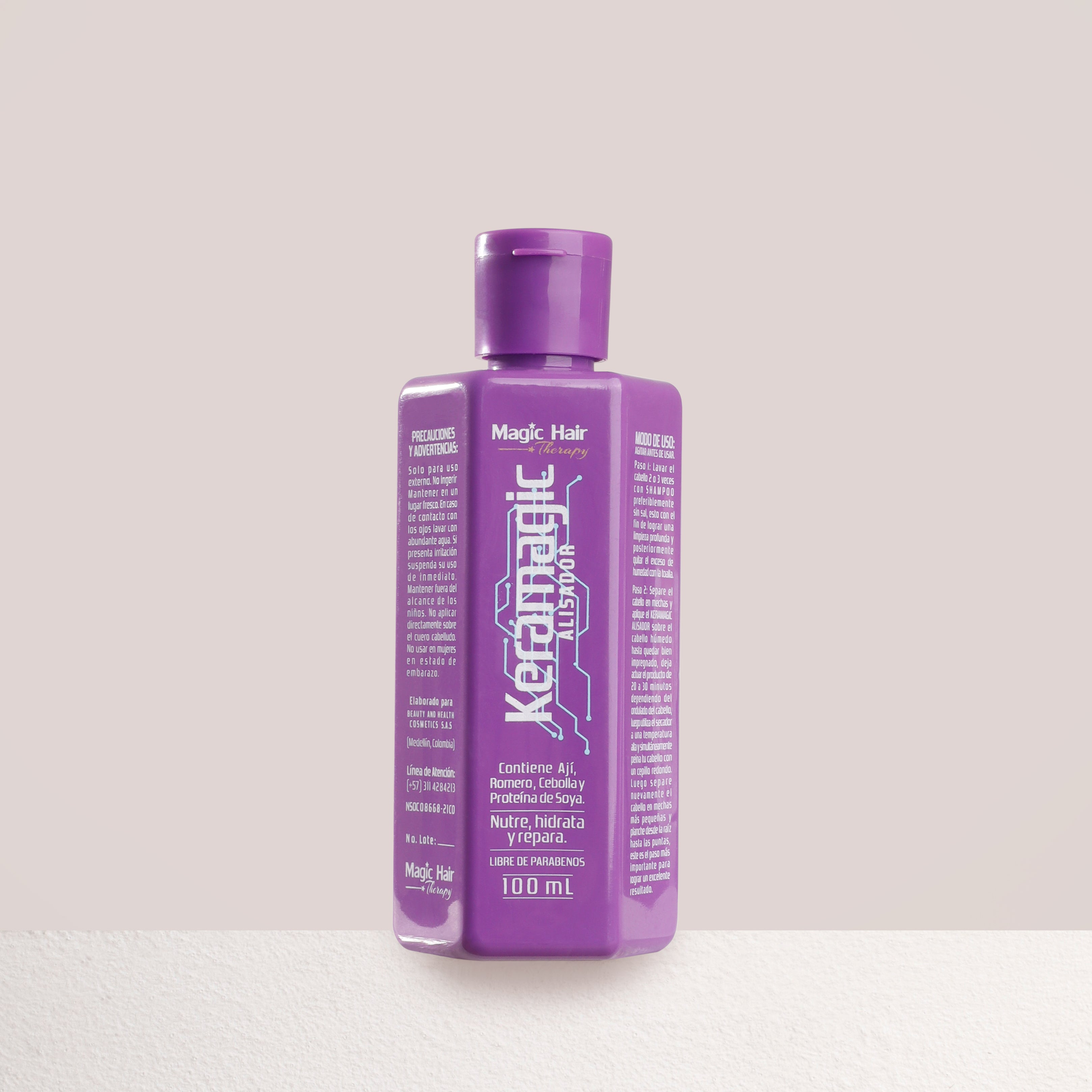 CONTIENE: Keratina hidrolizada, cebolla, romero, ají y proteína de soya que aportan también crecimiento de la hebra capilar.