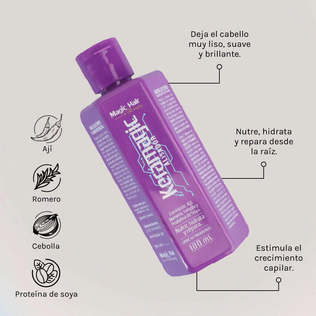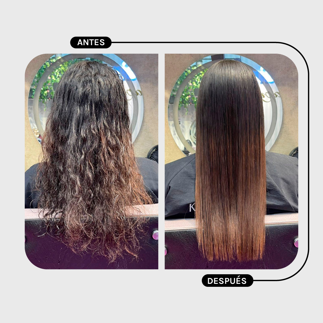 Transforma el cabello ondulado y rebelde en un cabello suelto, hidratado y sedoso con efecto liso natural. No contiene formol ni amoniaco. Se puede aplicar desde los 13 años en adelante bajo supervisión de un adulto.